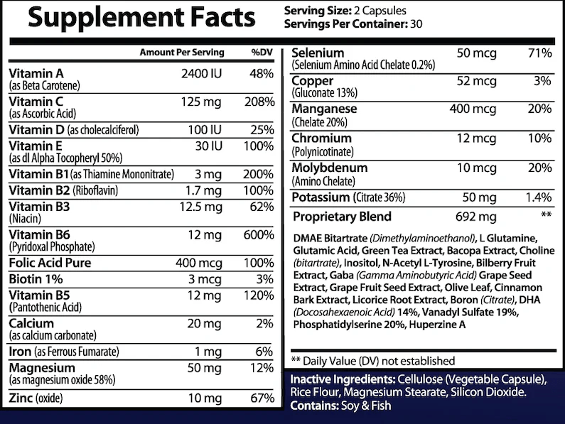In addition to cognitive performance, this formula supports immune function, skin health, and cellular repair. With nutrients that assist in DNA synthesis and cell growth, it’s a reliable option for maintaining overall wellness alongside mental performance.
