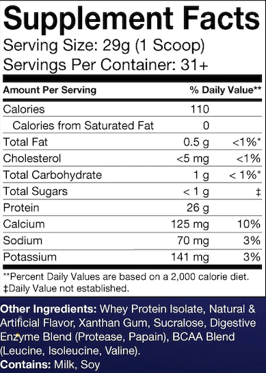 Whey Isolate contains both Papain and Protease for protein absorption and NO CHEAP INGREDIENTS like Glycine or Taurine to falsely increase protein levels.